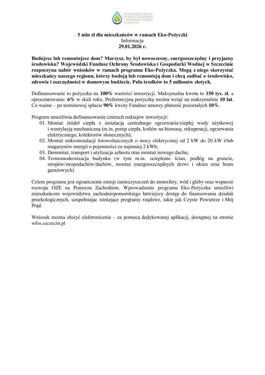 EKO-POŻYCZKI - INFORMACJA