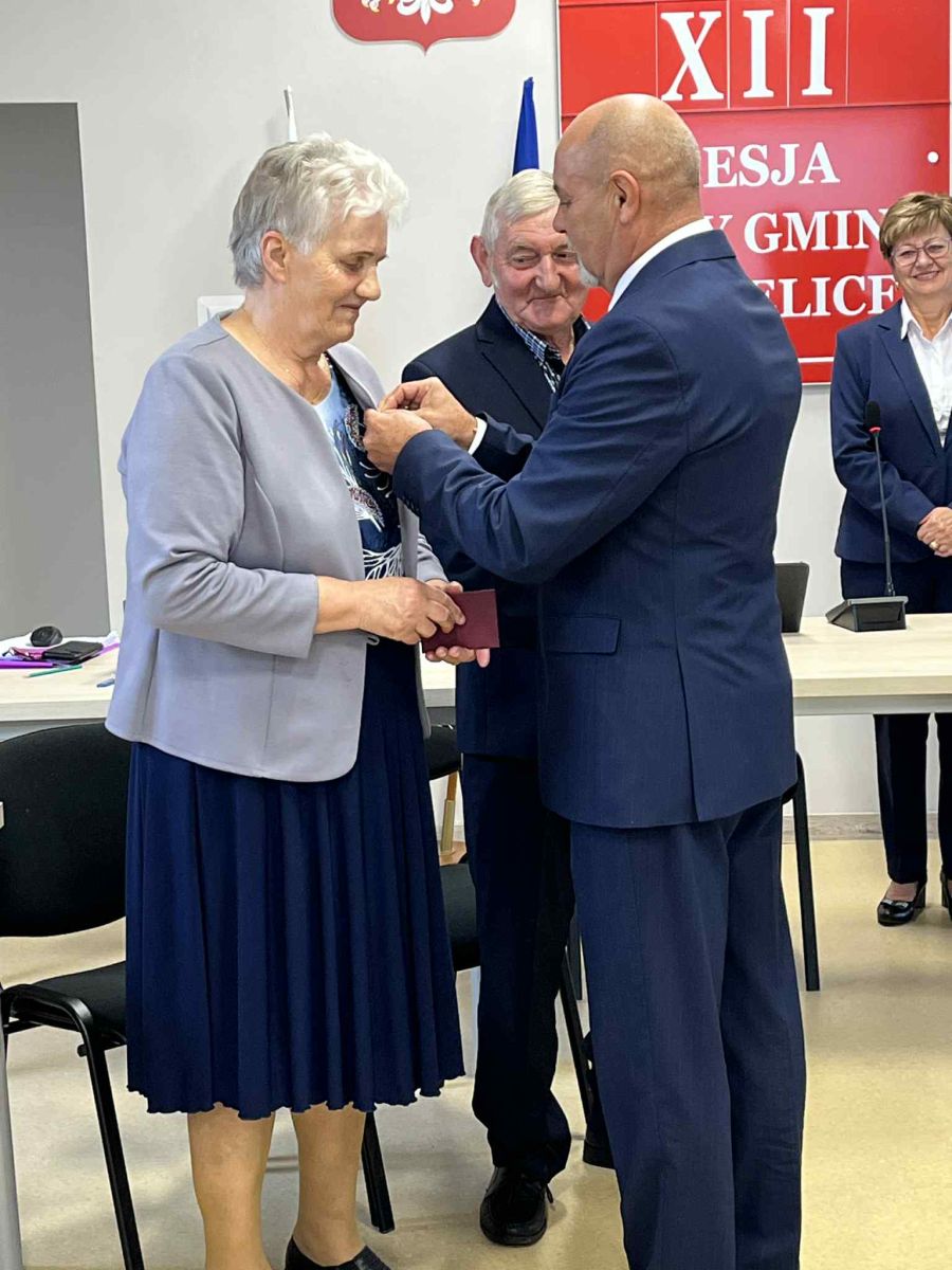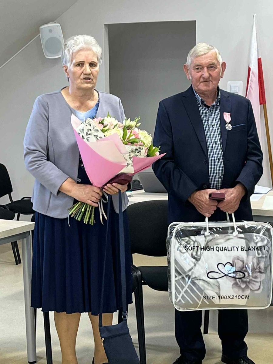 Na ręce Jubilatów: Jadwigi i Edwarda Łopata, przez Wójta Gminy Kozielice Piotra Rybkowskiego oraz przewodniczącego Rady Gminy Leszka Karpińskiego, zostały wręczone medale za długoletnie pożycie małżeńskie, nadane przez Prezydenta Rzeczypospolitej Polskiej, kwiaty oraz inne upominki.