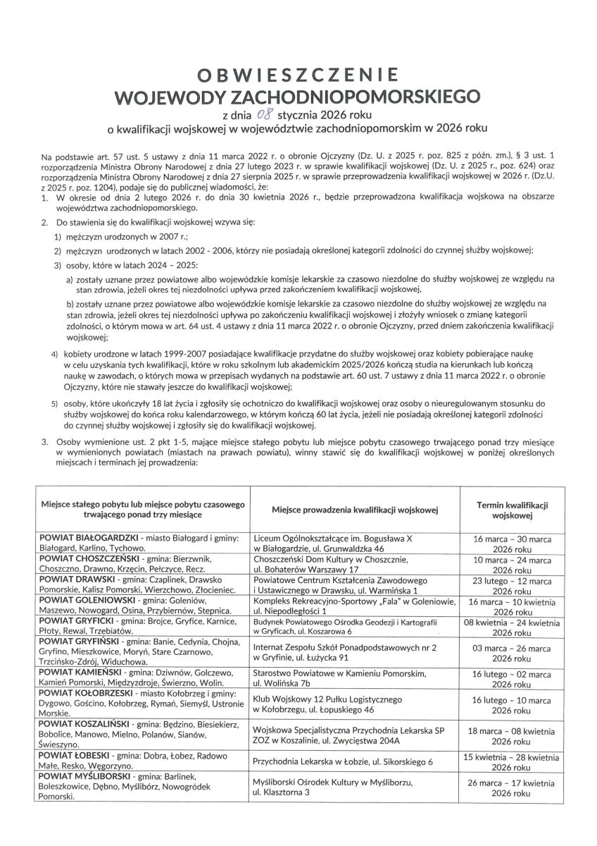 Obwieszczenie Wojewody Zachodniopomorskiego