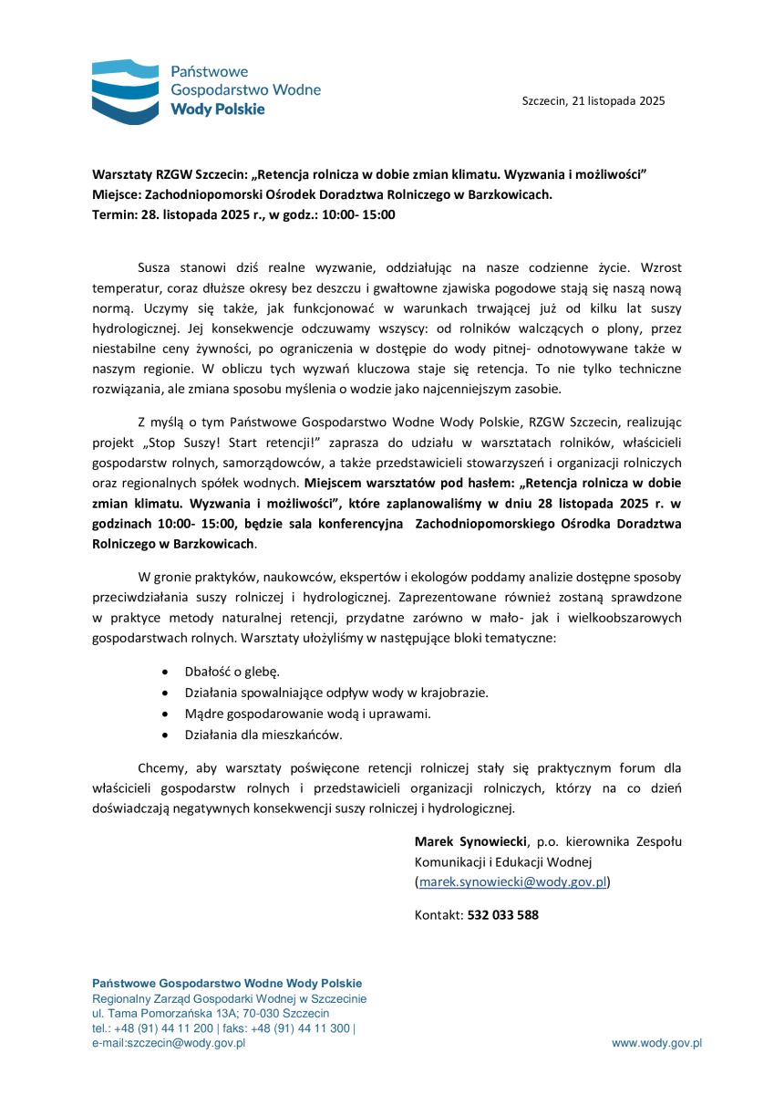 "Retencja rolnicza w dobie zmian klimatu. Wyzwania i możliwości"