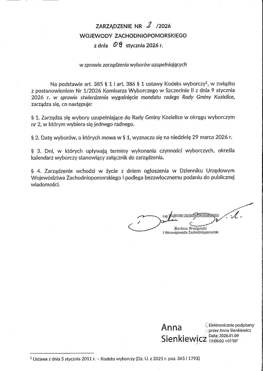ZARZĄDZENIE NR 2/2026 WOJEWODY ZACHODNIOPOMORSKIEGO z dnia 09 stycznia 2026 r.