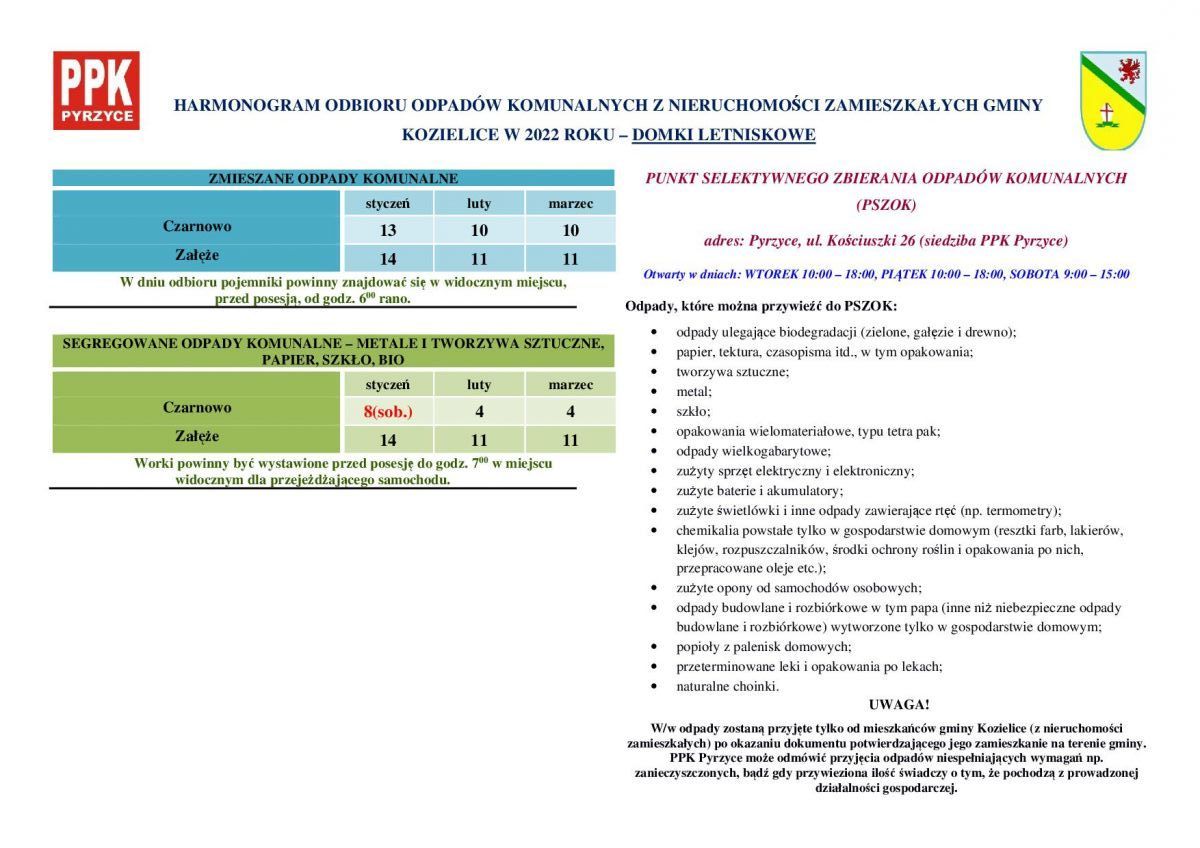HARMONOGRAM ODBIORU ODPADÓW 2022'